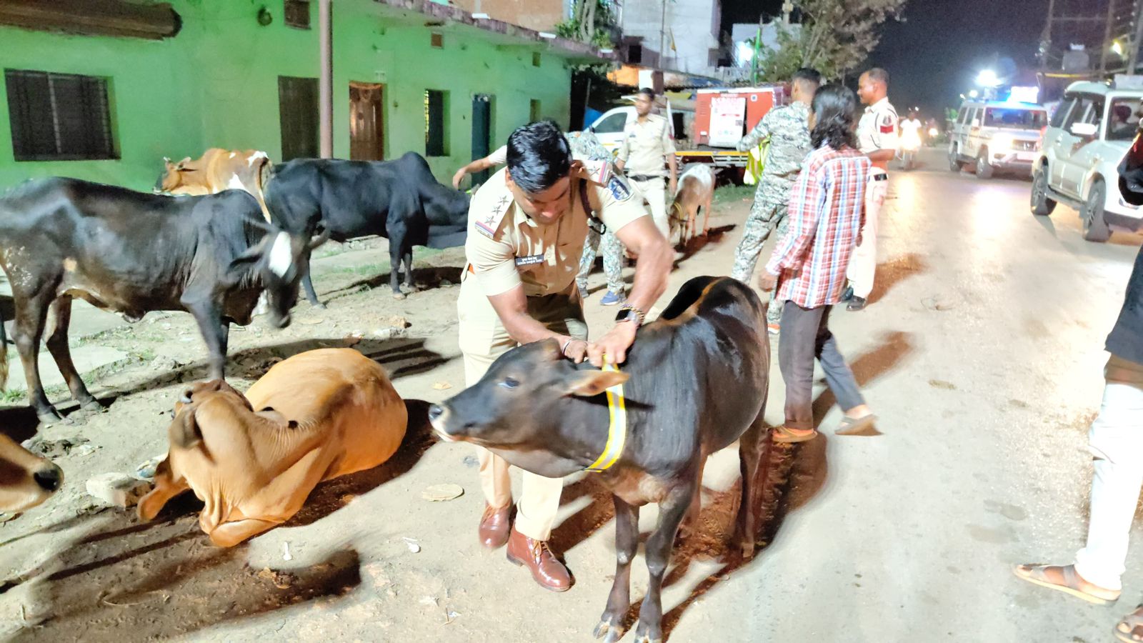 सड़क सुरक्षा में घरघोड़ा पुलिस की सराहनीय पहल, मवेशियों के गले में लगाए गए रेडियम कॉलर टैग